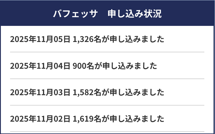 ただし、バフェッサのキャンペーンは毎回人気でいきなり終了する場合もあるので早めに参加しておきましょう🙌